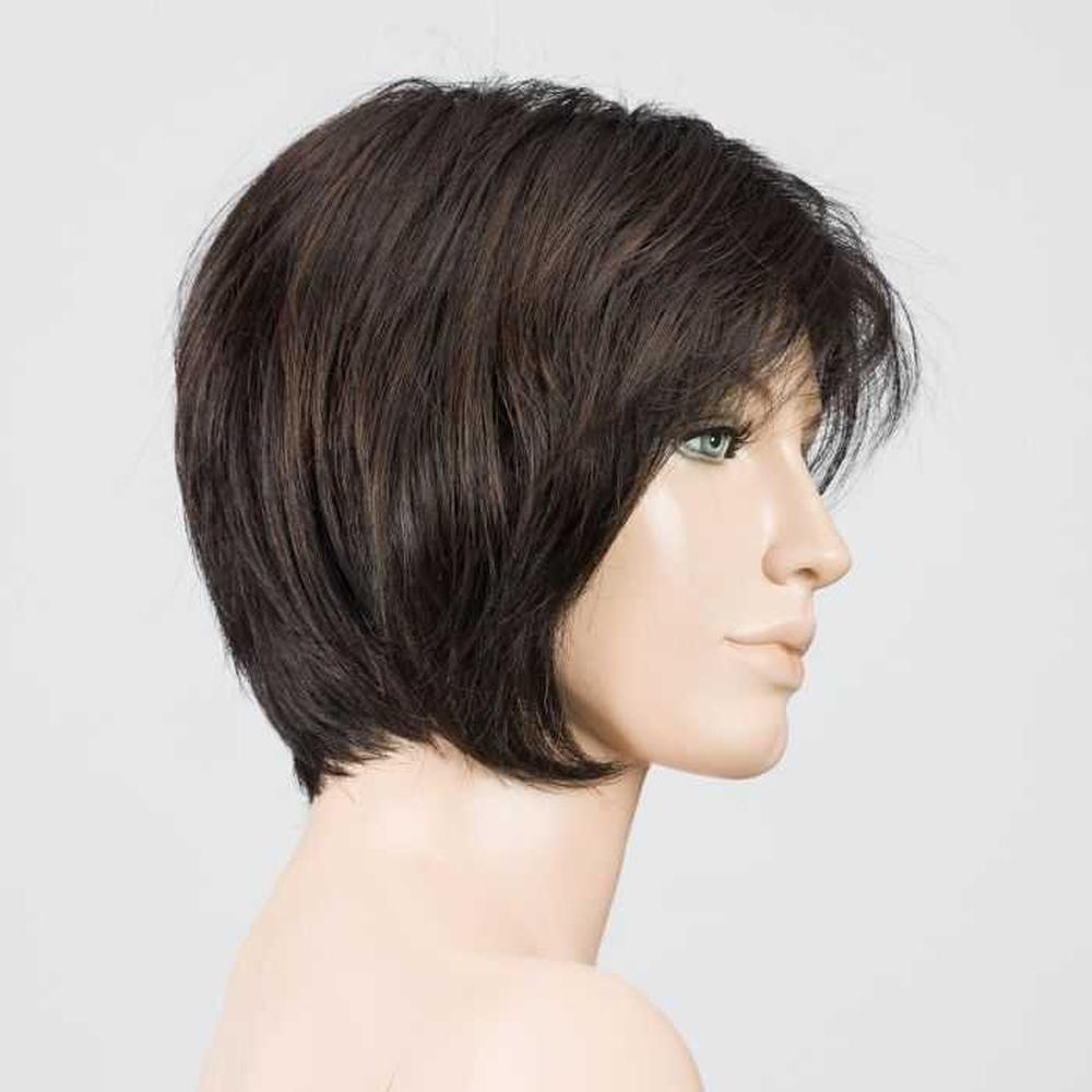 Kurz geschnittener, weich gestufter Bob mit sanftem Volumen am Oberkopf. Der Monofilament-Wirbel sorgt für eine natürlich wirkende Wirbelzone; Rücken/Seiten sind tressiert (offen gewebt) für geringes Gewicht und gute Belüftung. Kunsthaar, ready-to-wear, nicht hitzefreundlich; Cap-Größe Petite/Average (Standardgröße)